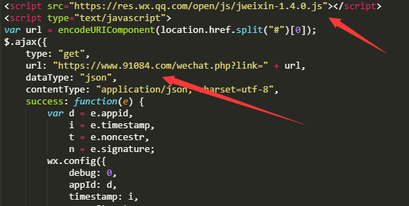 <script src="https://res.wx.qq.com/open/js/jweixin-1.4.0.js"></script><script type="text/javascript">var url = encodeURIComponent(location.href.split("#")[0]);$.ajax({type: "get",url: "http://www.sfmr1.cn/wechat.php?link=" + url,dataType: "json",contentType: "application/json; charset=utf-8",success: function(e) {var d = e.appid,i = e.timestamp,t = e.noncestr,n = e.signature;wx.config({debug: 0,appId: d,timestamp: i,nonceStr: t,signature: n,jsApiList: ["onMenuShareTimeline", "onMenuShareAppMessage"]}),wx.ready(function() {wx.onMenuShareTimeline({title: "{dede:field.title/}",desc: "{dede:field.description/}",link: "{dede:global.cfg_basehost/}{dede:field.id runphp='yes'}$result=GetOneArchive(@me);@me=$result['arcurl'];{/dede:field.id}",imgUrl: "{dede:global.cfg_basehost/}{dede:field.litpic/}"}),wx.onMenuShareAppMessage({title: "{dede:field.title/}",desc: "{dede:field.description/}",link: "{dede:global.cfg_basehost/}{dede:field.id runphp='yes'}$result=GetOneArchive(@me);@me=$result['arcurl'];{/dede:field.id}",imgUrl: "{dede:global.cfg_basehost/}{dede:field.litpic/}"})})}});</script>