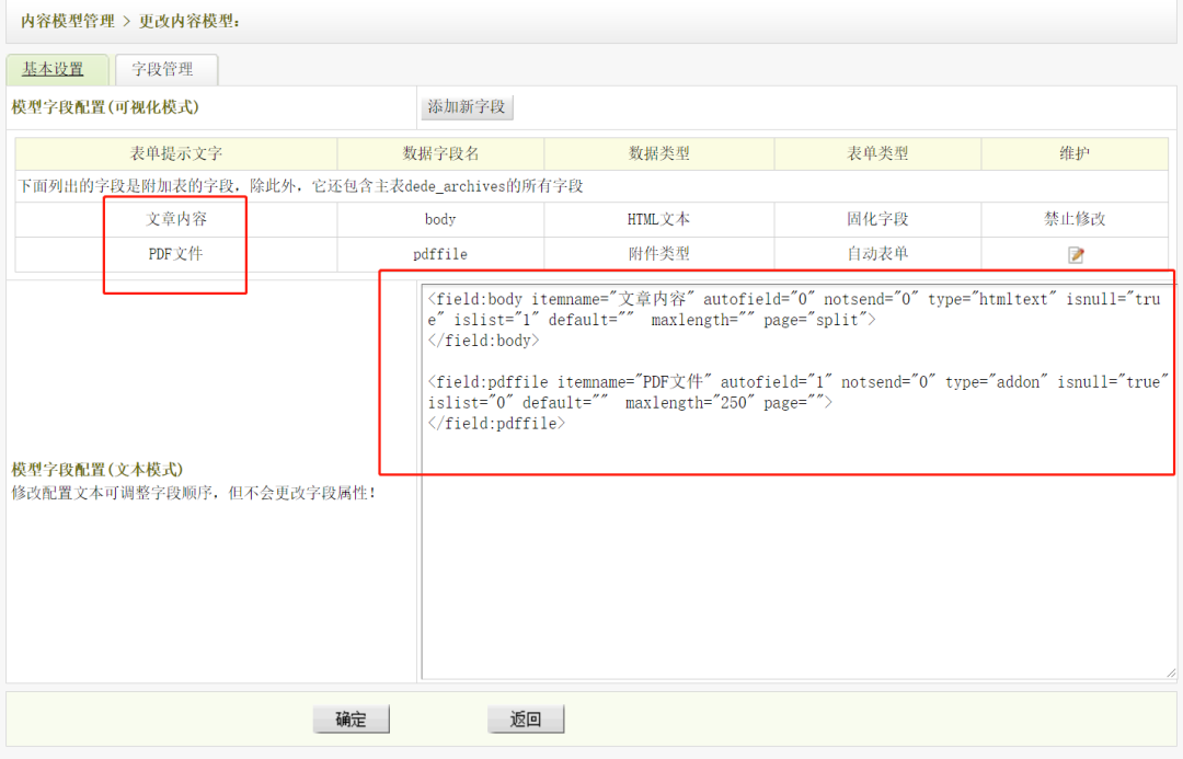 接下來,我們到內容模型管理里,去給產品欄目所使用的的模型,也就是普通文章,增加一個字段。