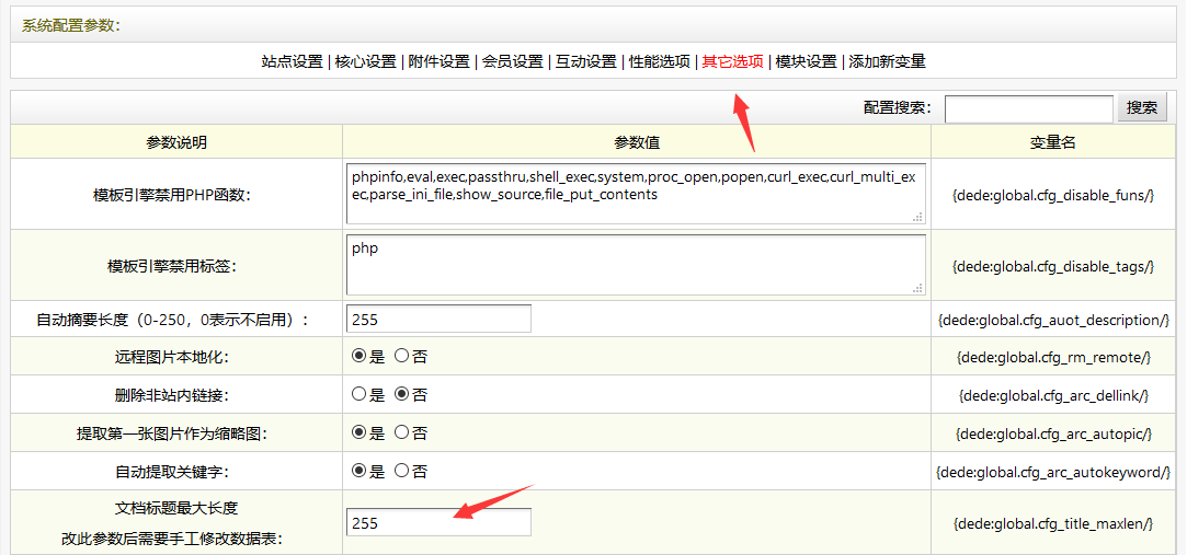 后臺-系統(tǒng)-基本參數(shù)-其它選項-文檔標題最大長度-255
