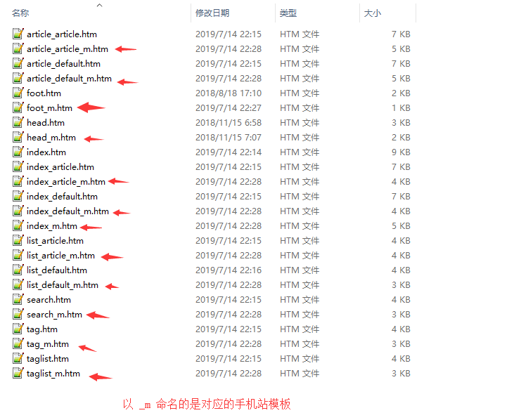 9、電腦站模板文件和手機站模板文件還是按原來的命名