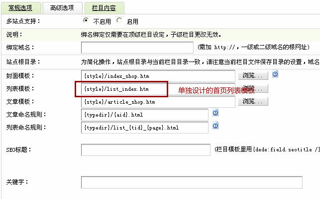 3、模板就直接用列表模板就可以了,如果你技術好的話,可以設計成自己想要的模板,比如矮油設計瀑布流淘寶客模板首頁采用的list_index.htm就是單獨設計的,那么設置首頁模板就可以設成這個。
