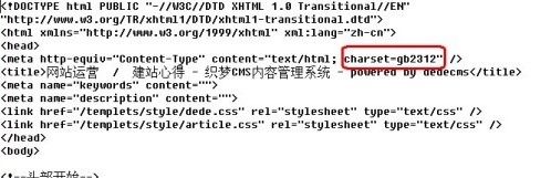 找到目標(biāo)頁(yè)面編碼,就在charset后面