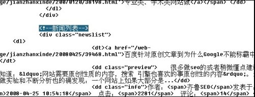 右鍵查看源文件 找到區(qū)域開(kāi)始的HTML,就是找文章列表開(kāi)始的標(biāo)志。