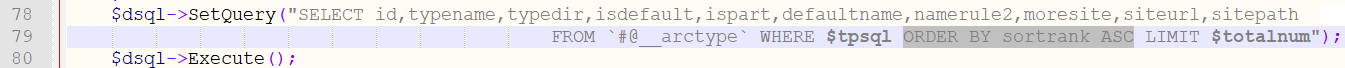 $tpsql = " id IN($typeid) AND ispart<>2 AND ishidden<>1 ";