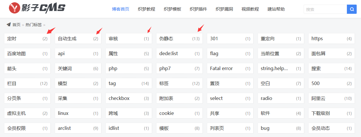 dede:tag標簽里調用每個標簽包含有幾個所屬文檔數