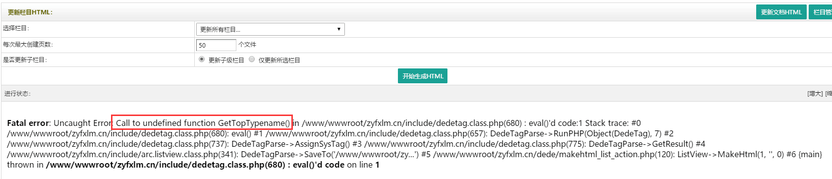 這是因為模板里調用了GetTopTypename()這個函數,而你程序中沒有這個函數引起的報錯,我們添加這個函數進去就可以了。