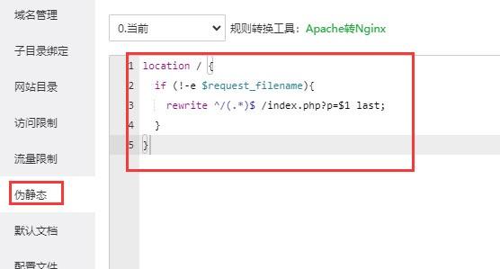 Nginx環(huán)境,請打開nginx.txt文件,把里面的代碼復制到配置中,下面我們以寶塔為例,