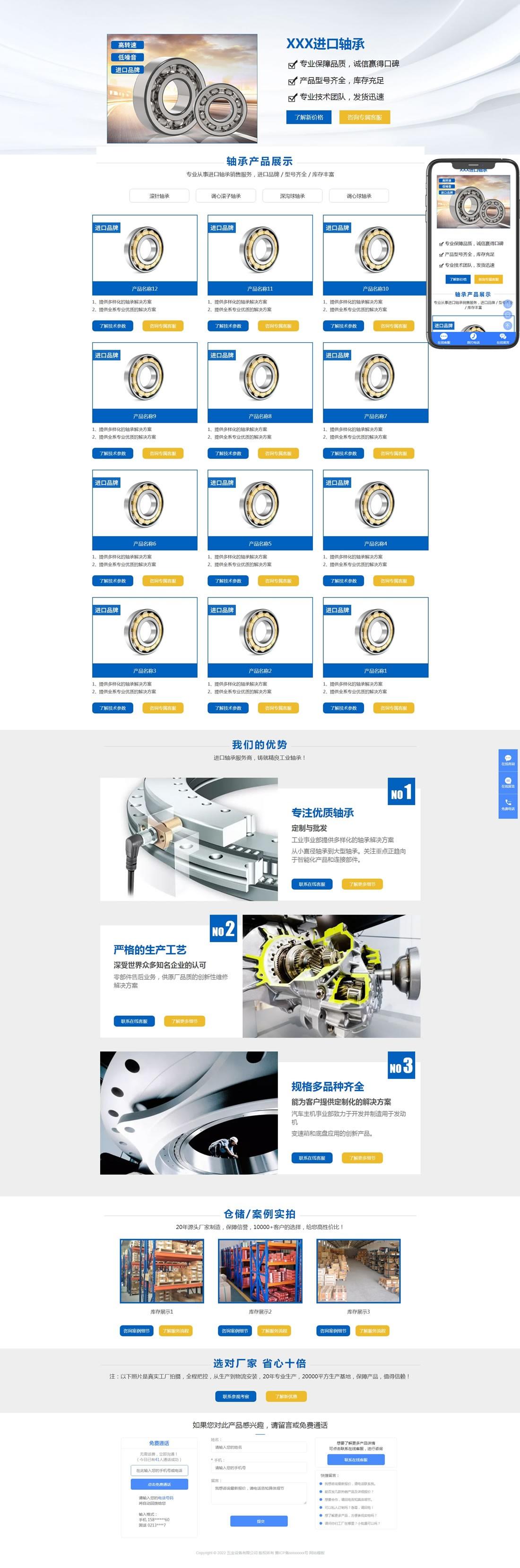 五金軸承推廣落地頁(yè)pbootcms模板(自適應(yīng)手機(jī)端)