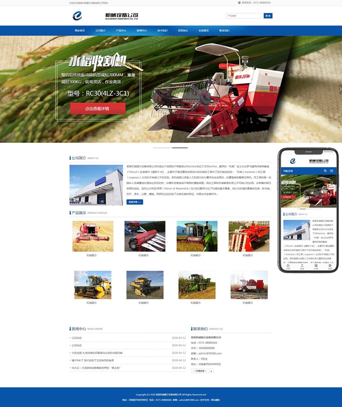 大型機(jī)械設(shè)備類網(wǎng)站pbootcms模板(自適應(yīng)移動(dòng)端)