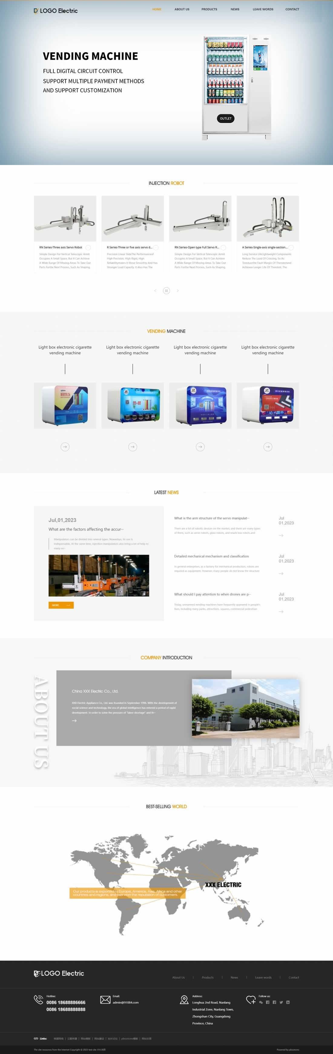 注射機器人英文外貿類網站pbootcms模板(自適應手機端)