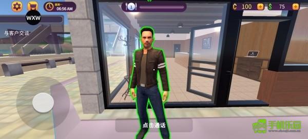 2、通過虛擬搖桿來操作角色的移動,點擊電腦,進行采購;