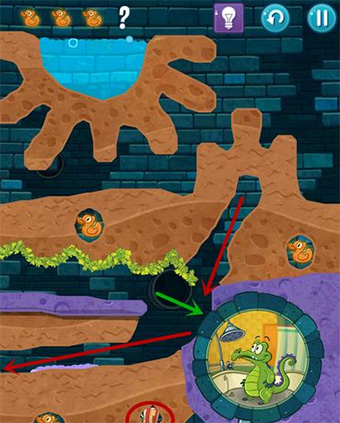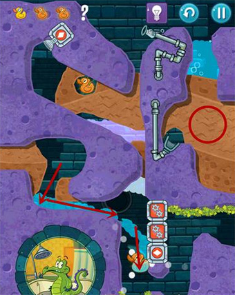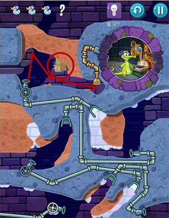 6、在屏幕上滑動手指可以消除道路,只要將水送到小鱷魚處就可以通關。