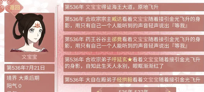 五、飛升意味著游戲結束,如果你不希望他人飛升,可以通過給予藥物(萬能藥)來增加他們留在身邊的幾率?!⒁饪刂苿┝?,否則可能會意外導致對方死亡。