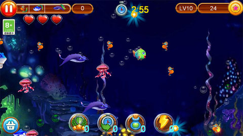 1在游戲中,玩家要操控一條小魚,通過不斷吃掉比自己體積小的魚來逐漸長大。